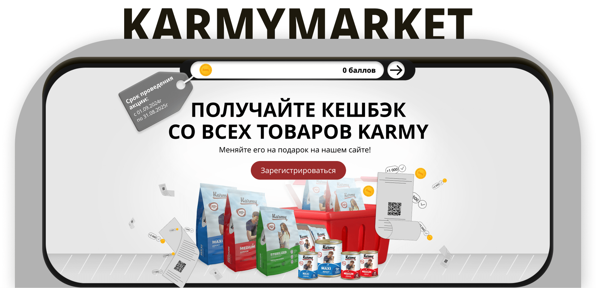Получайте с суммы каждой покупки кешбэк баллами Karmy.